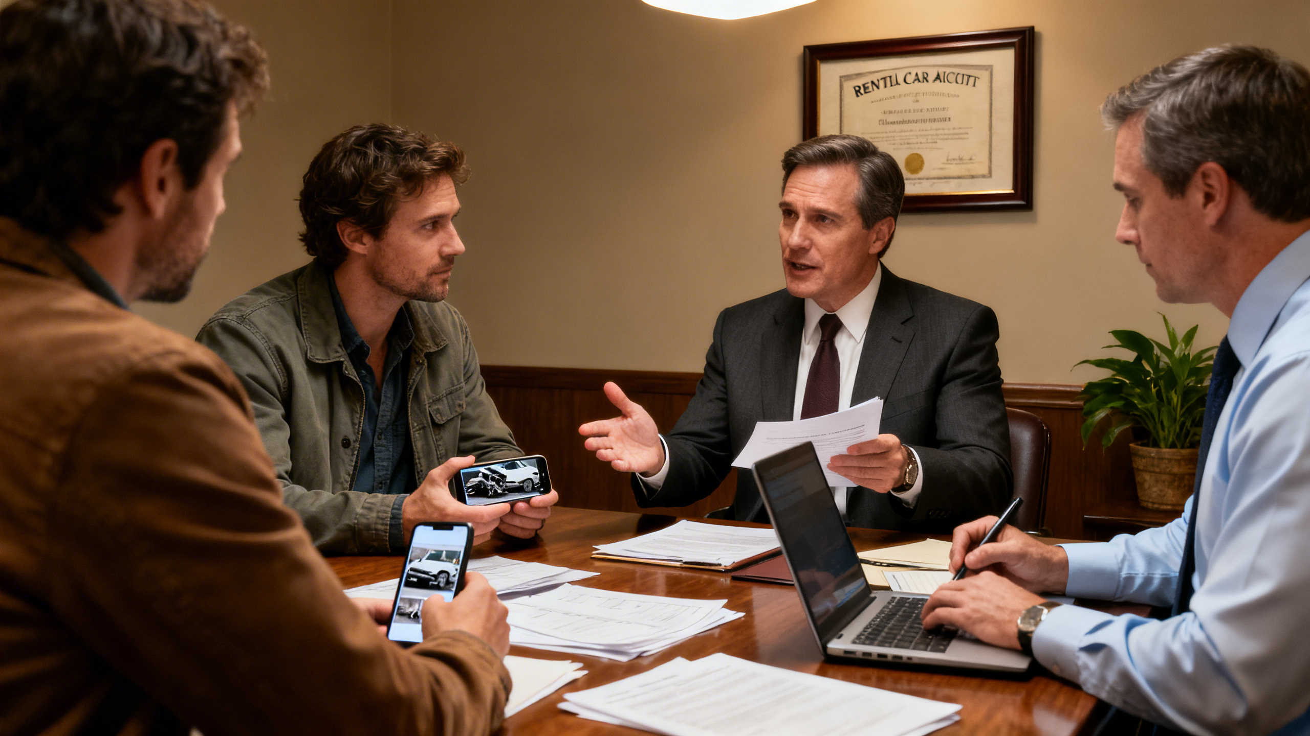 - Collect timestamped scene evidence and pre-rental vehicle condition documentation
